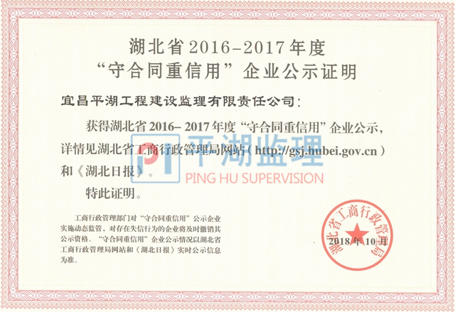 湖北省第十四屆(2016-2017年度)守合同重信用企業(yè)