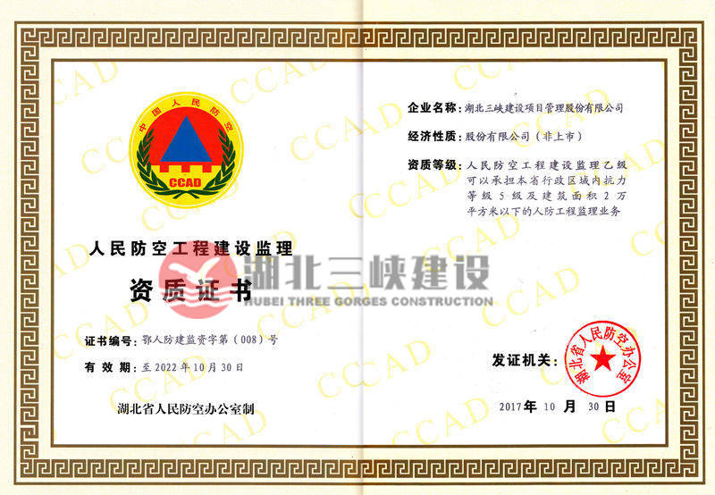 人民防空工程建設(shè)監(jiān)理資質(zhì)證書