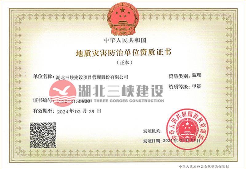 地質災害防治單位資質證書